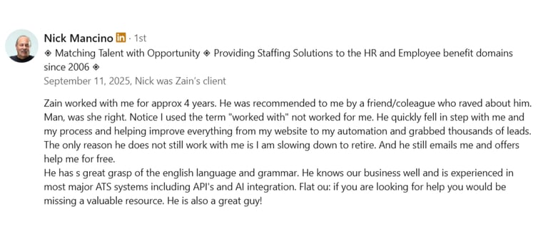 From building scalable processes and automating repetitive workflows to supporting teams with trained remote talent, our focus is on creating leverage. We connect strategy with execution, ensuring that the right signals, tools, and people are working together rather than in silos.
